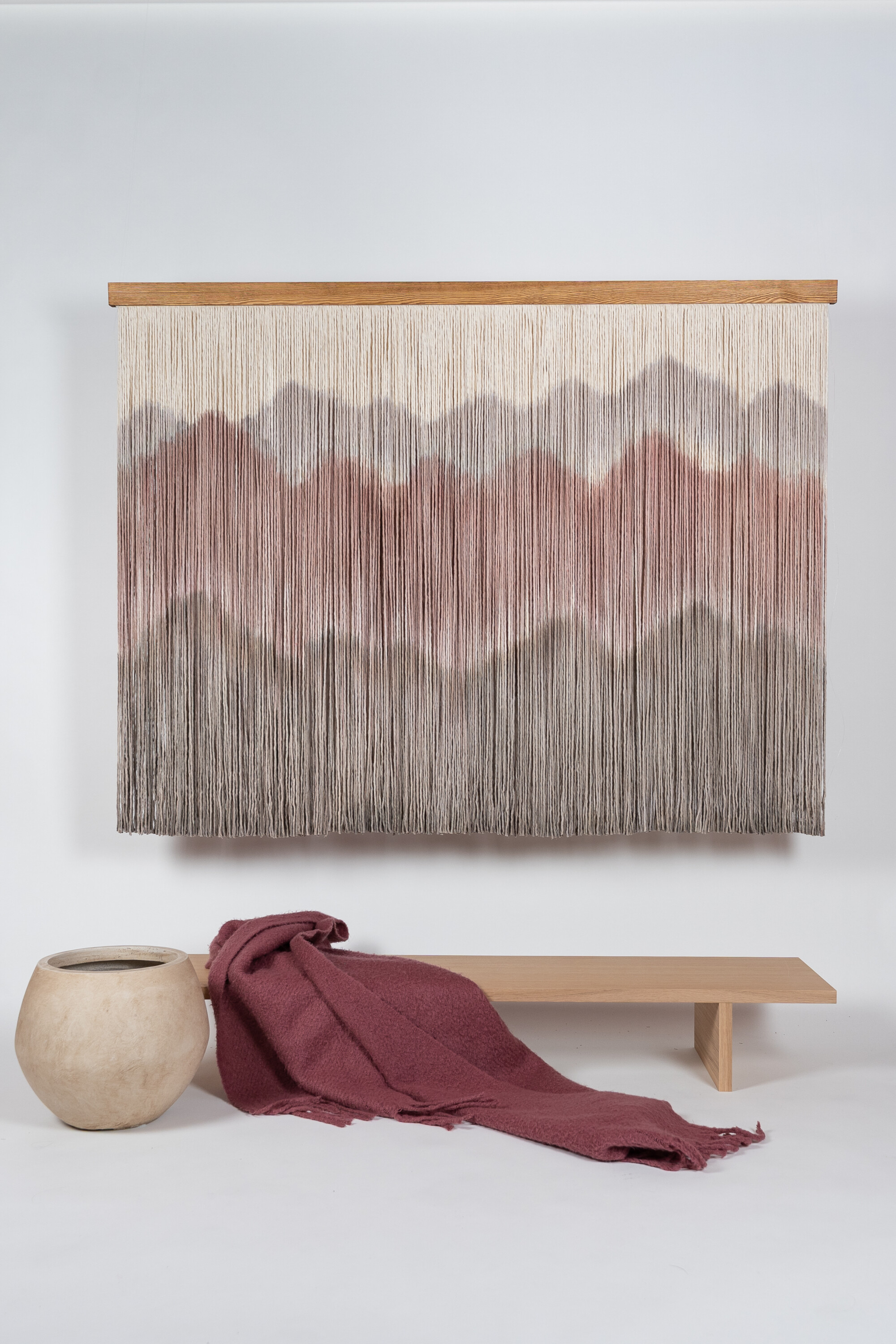 An elegant and understated wall hanging that draws attention without grand gestures. The mountain-like pattern and softly shifting tones create a calm yet expressive atmosphere.