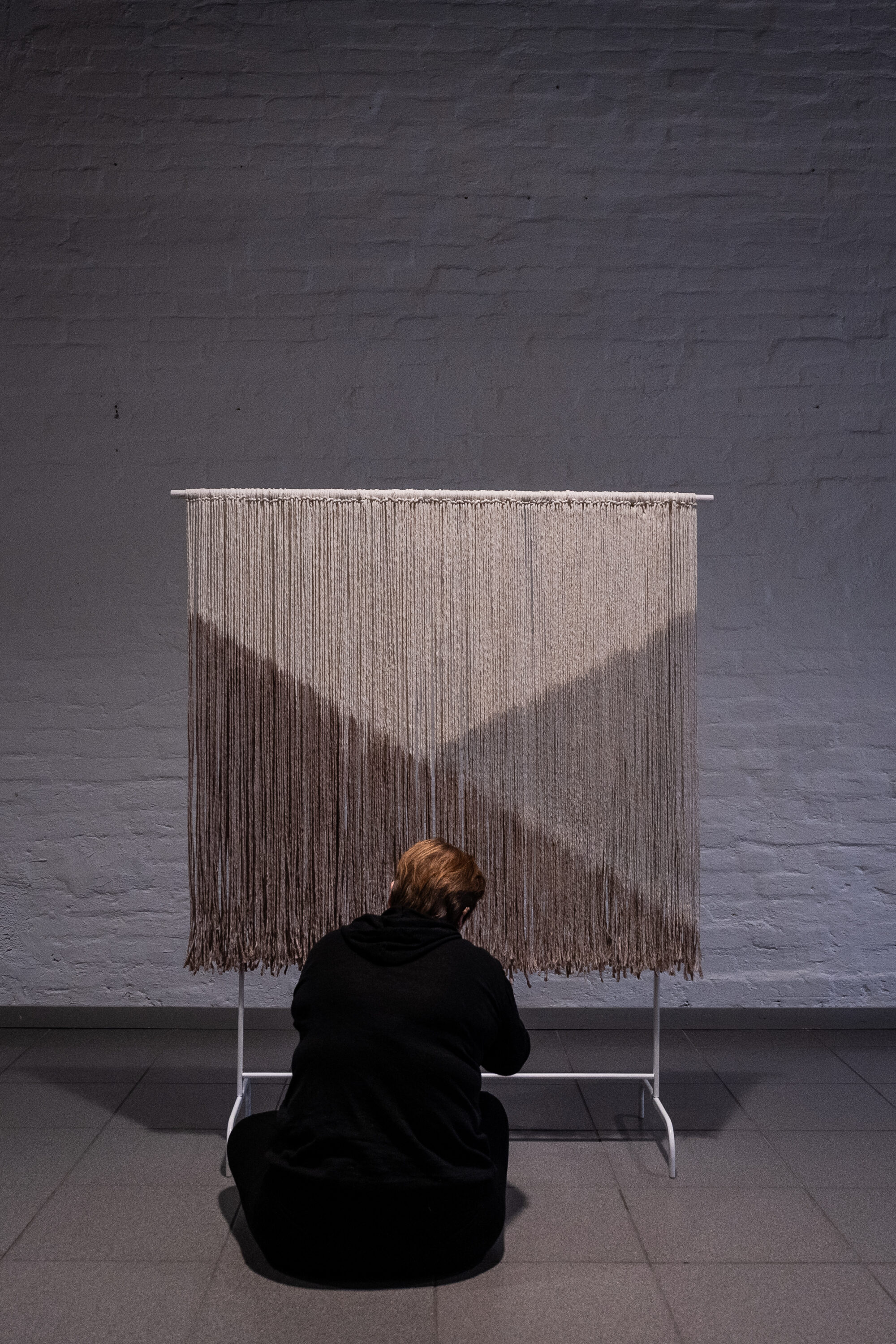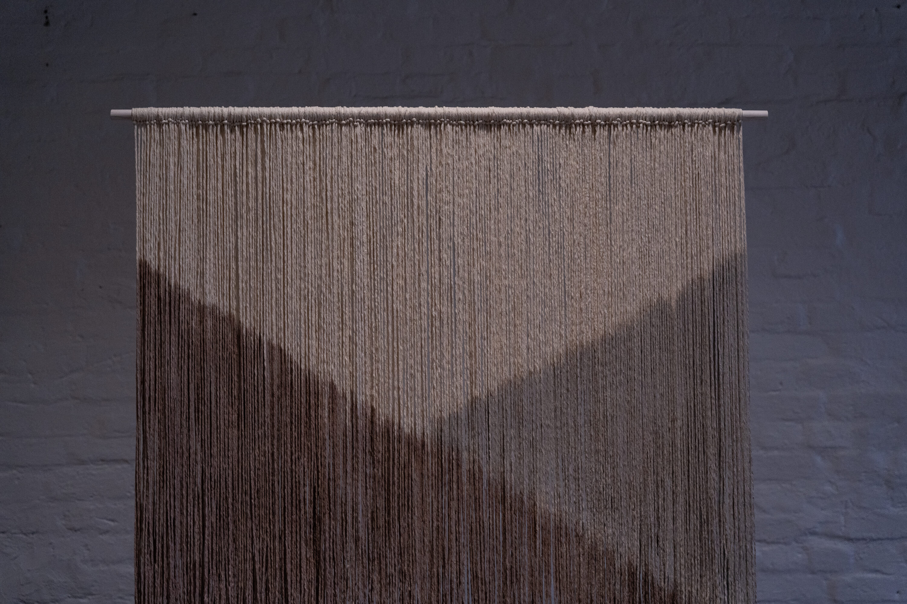 Laakso on Nohi-malliston moderni seinävaate, jossa sävyt kohtaavat pelkistetyssä diagonaalikuviossa. Teoksen pitkät, elävästi laskeutuvat langat tuovat tilaan tekstuuria ja aistillista pehmeyttä.